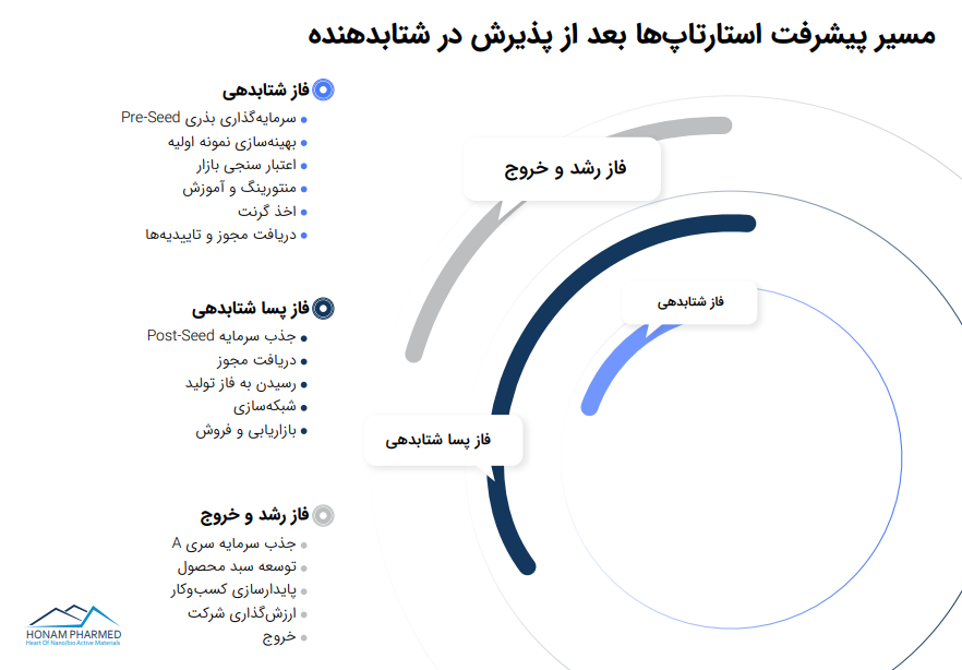 مسیر پیشرفت استارتاپ‌ها، سفری پرچالش است که از مرحله ایده‌پردازی تا مرحله رشد و پایداری کسب‌وکار را در بر می‌گیرد. هر استارتاپ برای موفقیت نیازمند گذر از مراحل مختلفی است که هر یک از آن‌ها دارای ویژگی‌ها و نیازهای خاص خود هستند. در شتاب‌دهنده دارویی هنام فارمد، ما با ارائه مجموعه‌ای از خدمات و حمایت‌ها، به استارتاپ‌ها کمک می‌کنیم تا این مسیر را با موفقیت طی کنند و به اهداف خود دست یابند.